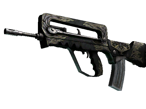 A cheap option for cash-strapped players, the FAMAS effectively fills the niche between more expensive rifles and the less-effective SMGs. It has been inlaid with gold and nickel and engraved with the image of a jinn.
